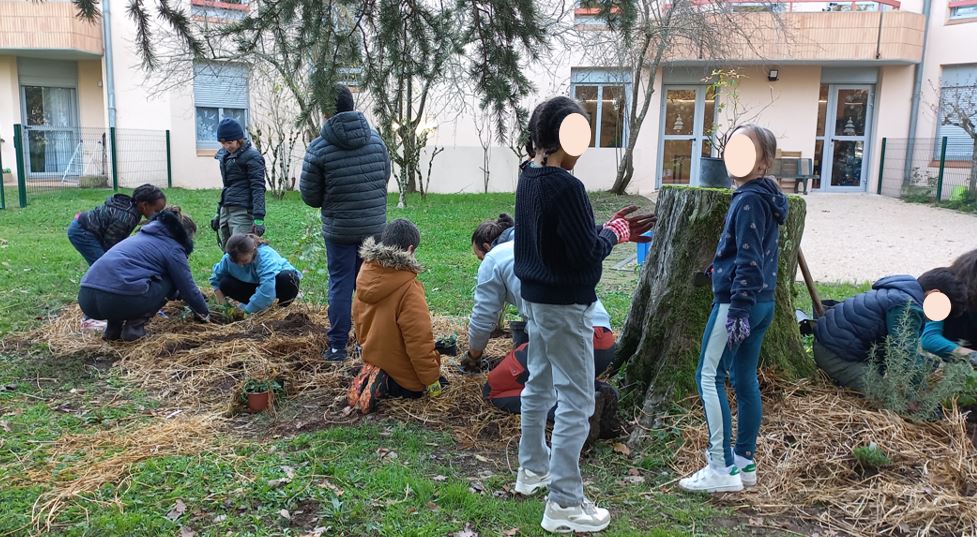 – Massifs Comestibles à Cugnaux : 5 ateliers animés sur l’année 2024 pour co-créer 5 massifs comestibles et fleuris avec: des habitants du quartier, des habitants de la résidence autonomie du parc de Loubayssens et la mairie. Plantations collectives avec les participants + une classe de CE2 d’une école voisine du parc.